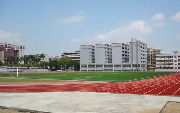 塑胶跑道为W走针型,其耐磨性能强,使用期限长达十年,且具有中国田径协会田径场地人工合成面层检测实验室的阻燃和金属的检测报告。表面看塑胶运动场费用较高,但由于其经久耐用,加上有优质的服务保障,因此大大降低了人工保养费用,属"一次投资长期受益"。